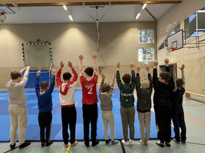 Hennef. Heute nahmen 9 Schüler aus unserer Schule zusammen mit Frau Klandt, Frau Nichols und Hr. Dazert am Tag des Judo in der Gesamtschule Meiersheide teil. Auf den Matten ging es dann direkt zur Sache: nach einem Aufwärmspiel, bei dem man andere Kinder „auf´s Kreuz“ legen musste, ging es mit Partner- und Kleingruppenübungen weiter. Mitglieder des Judoclubs Hennef leiteten die Schüler*innen und Schüler fachkundig an und achteten darauf, dass sich niemand verletzte und alle fair kämpften. Ein tolles Erlebnis, bei dem wir zusammen mit Schülern der Gesamtschule auf den Matten viel Spaß hatten.