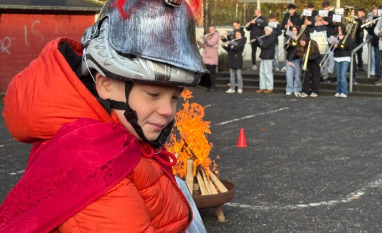 Nach einer Runde durch die nähere Umgebung (einige Nachbarn standen winkend mit Laternen am Straßenrand oder vor ihren Häusern) wartete auf dem Schuhof ein richtiges Martinsfeuer sowie für alle Kinder leckerere Weckmänner.